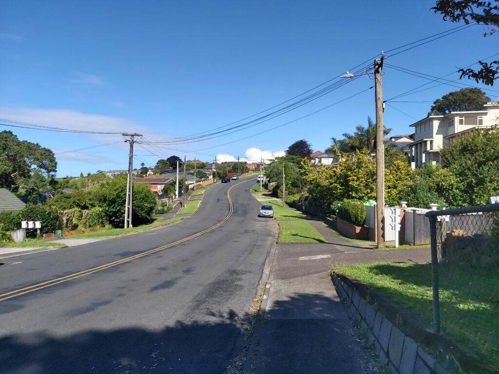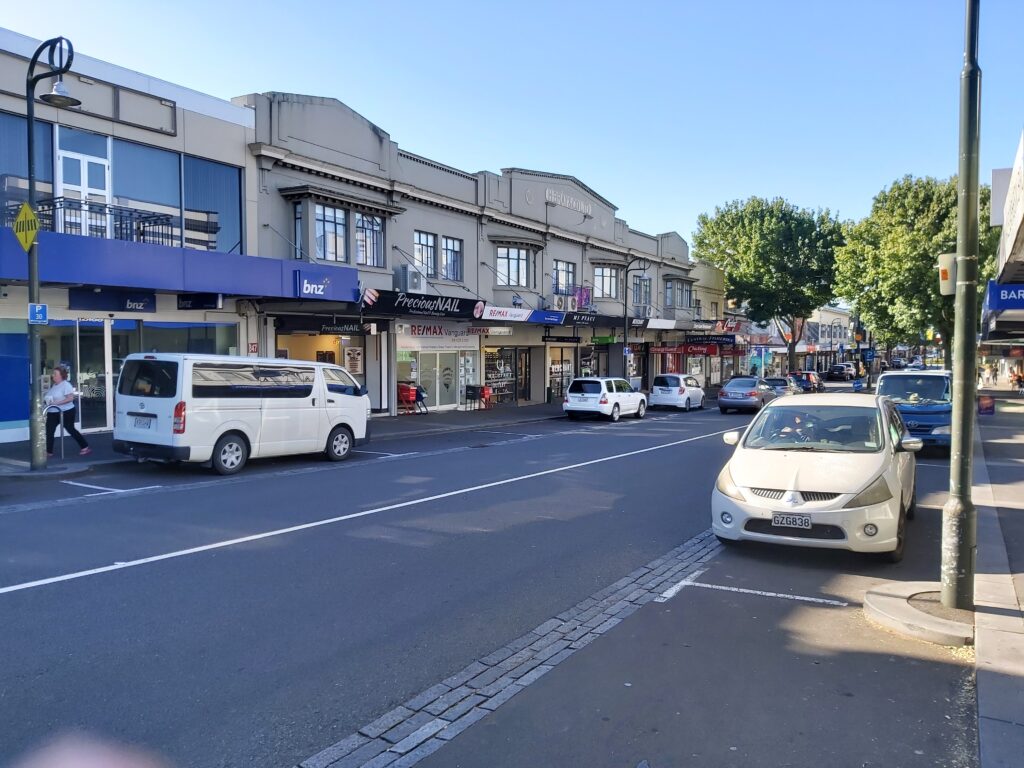 Ještě jsem vám po cestě na pláž udělal snímky dvou ulic v okolí. Celý Auckland (kromě naprostého centra s mrakodrapy) se v podstatě skládá ze dvou druhů ulic. Buď je to taková větší ulice kde jsou po stranách všude jednotlivé obchody a nebo je to ulice z obou stran lemované rodinnými domy. Pak jsou teda ještě průmyslové zóny, ale na těch nic zajímavého není.